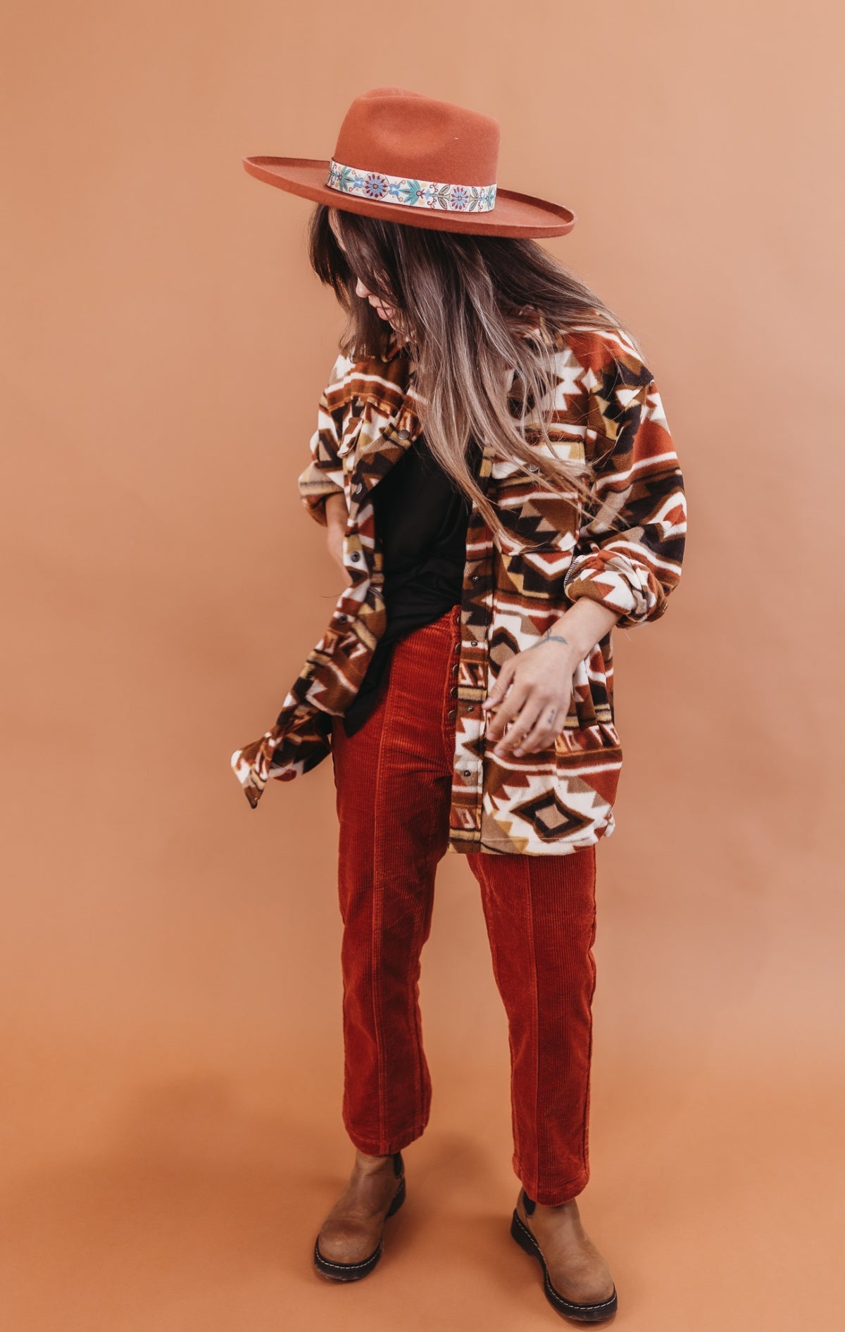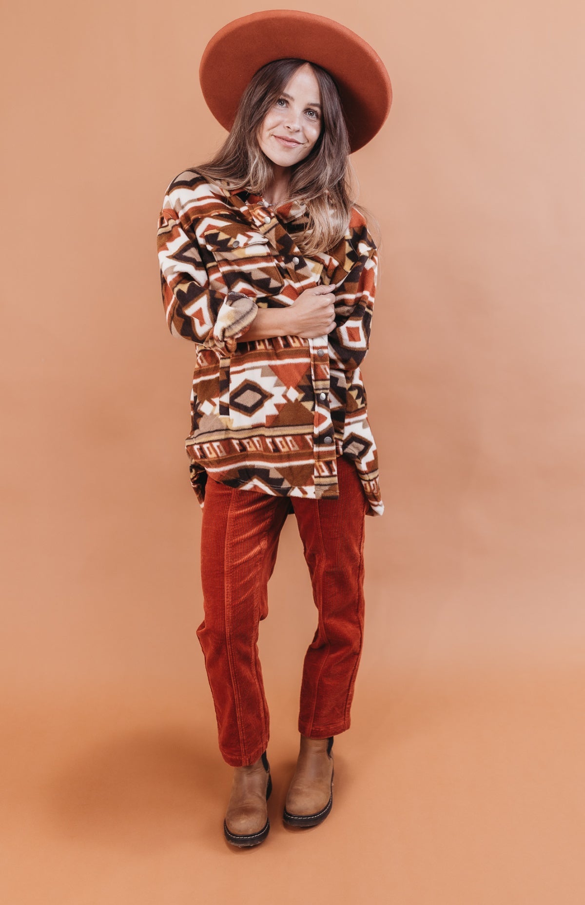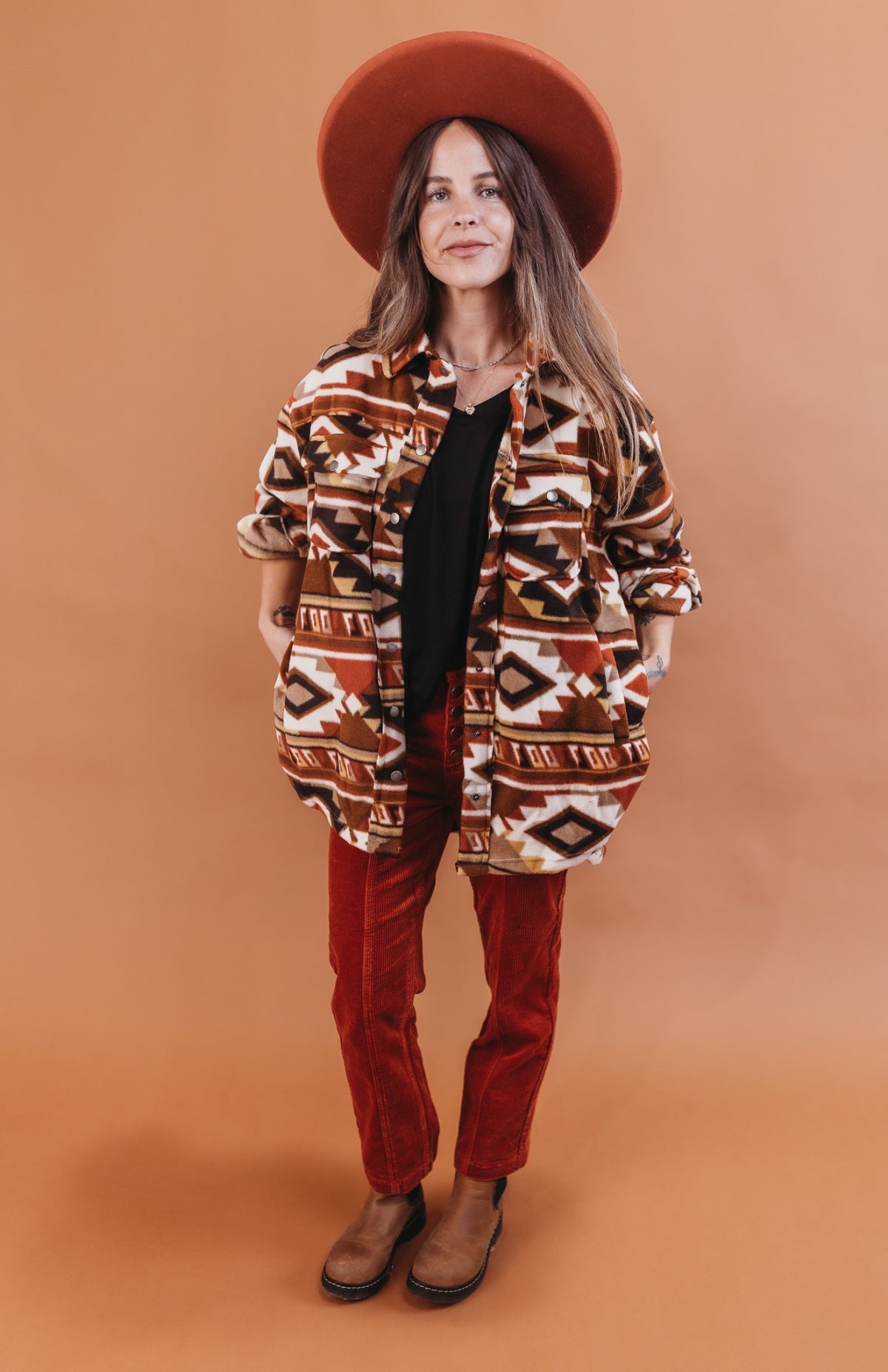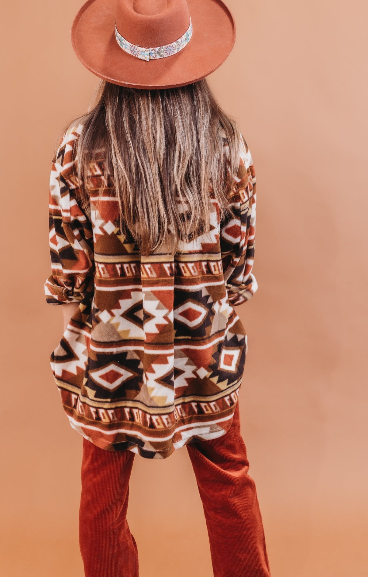 Rae Mode Aztec Print Fleece Open Front Long Sleeve Shacket